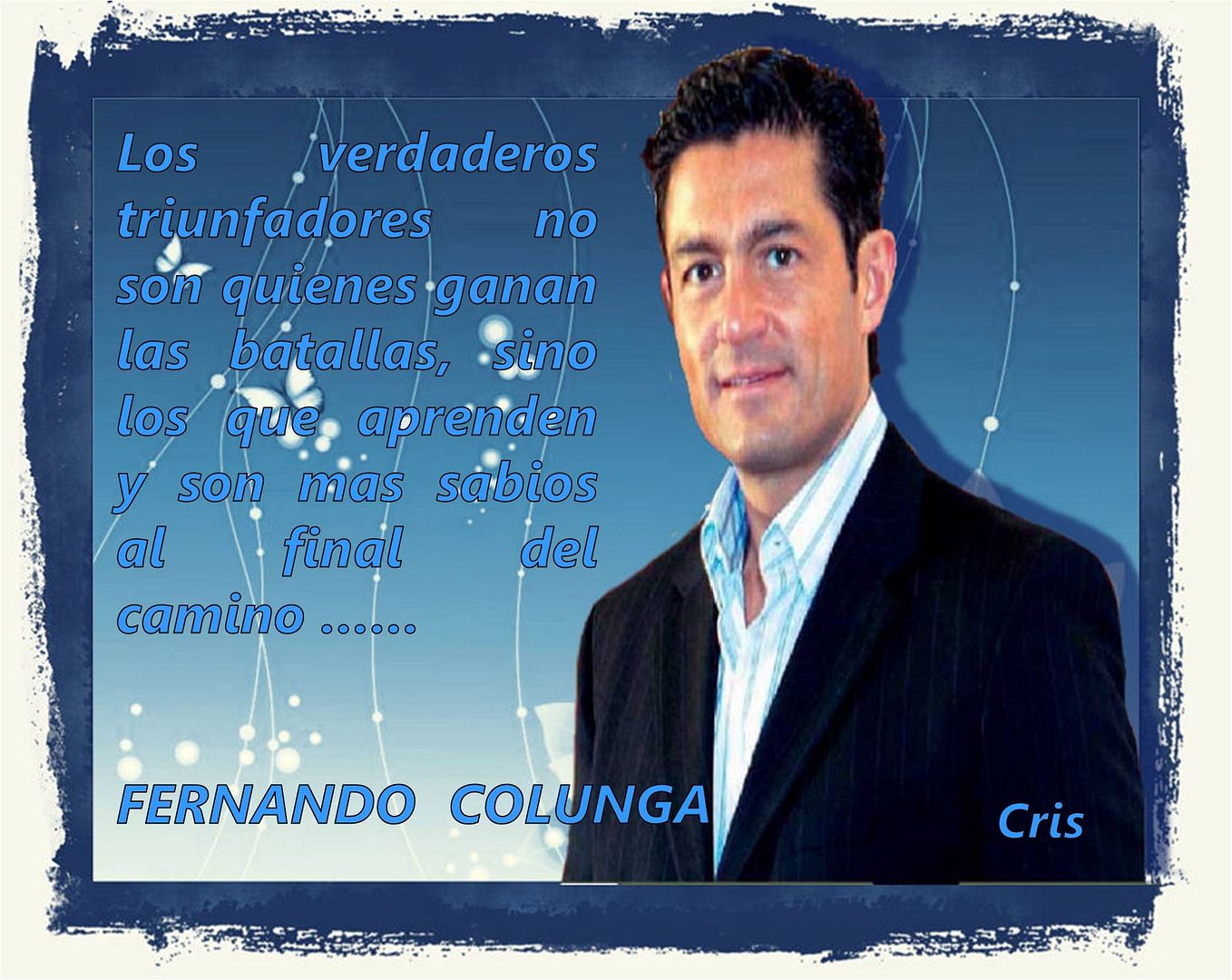 ADRI TOTALMENTE DE ACUERDO CONTIGO EN CUANTO A LAS PALABRAS QUE SE ENCUENTRAN EN TU LINDO BANNER... FER ES UN TRIUNFADOR Y SE LO A GANADO POR SU GRAN DEDICACIÓN Y AMOR A LO QUE LE GUSTA HACER...GRACIAS POR ALEGRARME ESTA LINDA NOCHE MÁGICA... SI NO ES MOLESTIA CUANDO TENGAS OPORTUNIDAD TE PUEDO ENCARGAR TU BANNER POR FAVOR... QUE PASES UNA HERMOSA NOCHE... SALUDOS CRIS