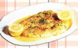 SE SIRVE EL PESCADO CON SU SALSA Y SE ACOMPAÑA CON UNAS RODAJITAS DE LIMÓN