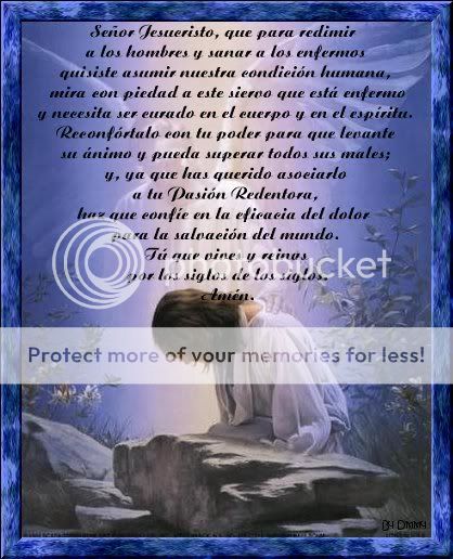 OREMOS POR LA SALUD DE EDI,CORAKHAN, ROSARIO, ELI (BETH), MARIA VE, POR EL HIJO DE ESPE (LAURA_39) RAULITO , ANGELES (CUBERA)......MONTSE....MARIAYCARMEN Y SU HIJO.....LORE.....Stella (COLSTELLA) tiene a su hijita Alejandra enferma con bronquitis. Roguemos por su pronta recuperación