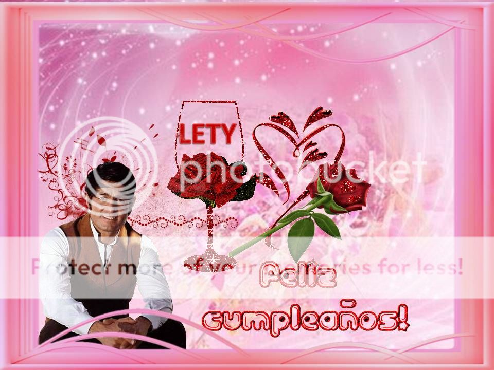 MUCHISIMAS FELICIDADES LETY!!!!.ESPERO QUE EN ESTE TU DIA ESPECIAL SE CUMPLAN TODOS TUS SUEÑOS CON TU FAMILIA Y TODA LA GENTE QUE TE QUIERE.TE DESEO TODO LO MEJOR ....PASATELO EN GRANDE Y DISFRUTA.BESOS....CARMEN