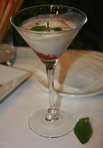 DECORA CON HOJAS DE MENTA Y UNAS GROSELLAS.