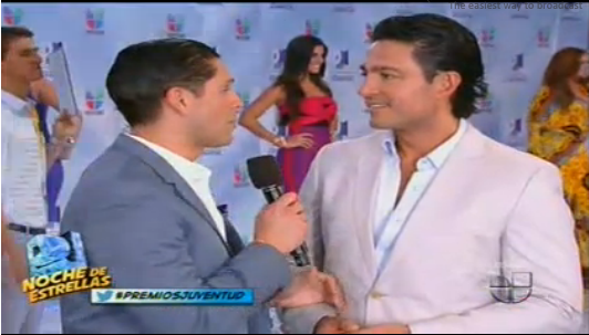 carpet. The telenovela actor wore an open shirt with a light colored suit. Made