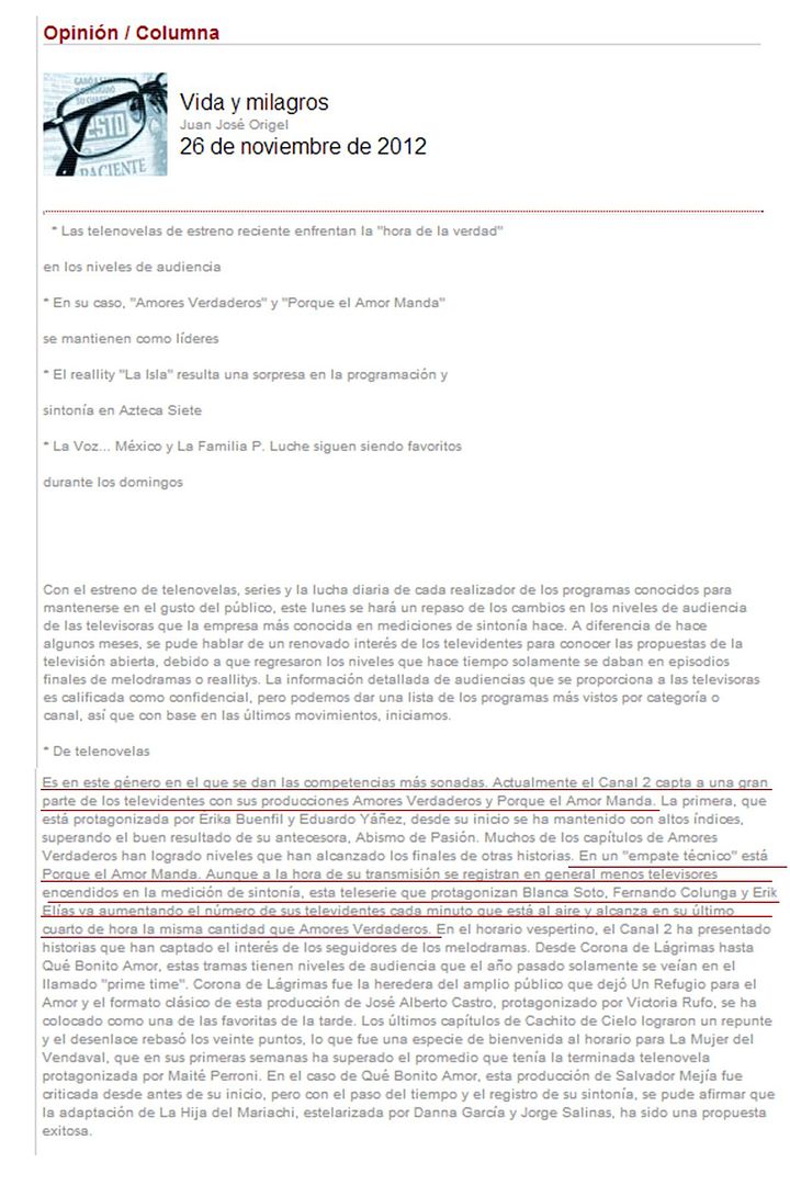les dejo la nota que publica Juan José Origel en su columna Vida y Milagro del periodico La Prensa