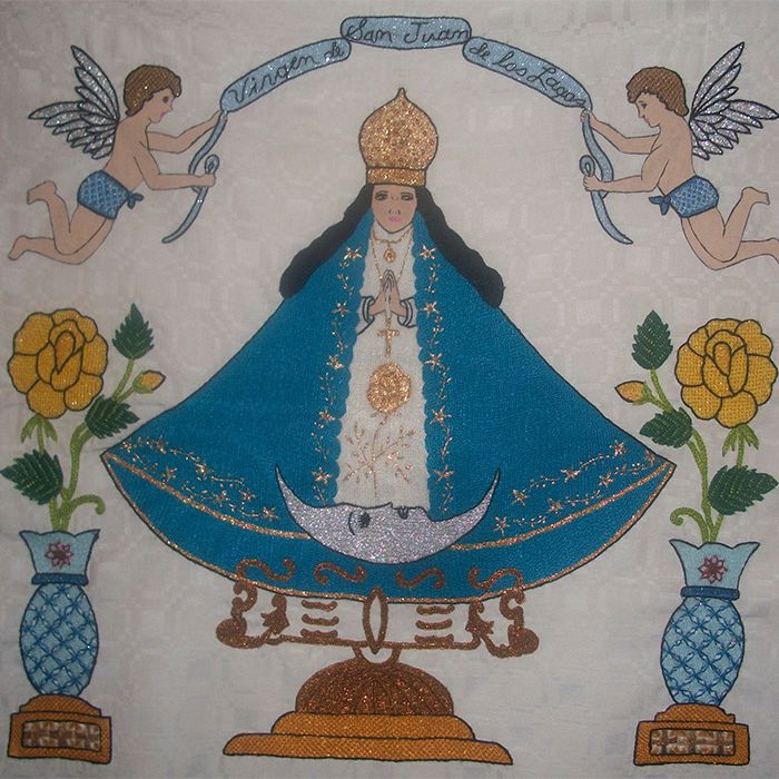 También quiero compartir con ustedes el último de mis bordados. Es la virgen de san Juan de los Lagos. Es uno de los varios trabajos manuales que se hacer y me siento muy orgullosa de ellos porque mamá me los enseño desde que tengo uso de razón.