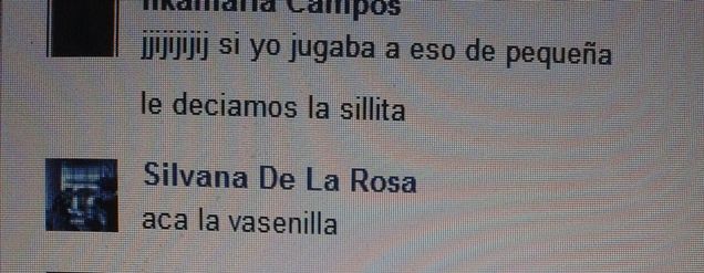 PERO EN MI TIERRA TAMBIEN HAY UN JUEGO QUE JUGABA MUCHO DE NIÑA QUE SE LLAMA LA VASENILLA PORQUE SUPUESTAMENTE CUANDO CARGAN DOS PERSONAS A UNA....EL PESO ES MENOR Y LA FORMA EN LA QUE ESTAN LAS MANOS DA MAS FUERZA...Y SE PUEDEN HACER RECORRIDOS LARGOS....