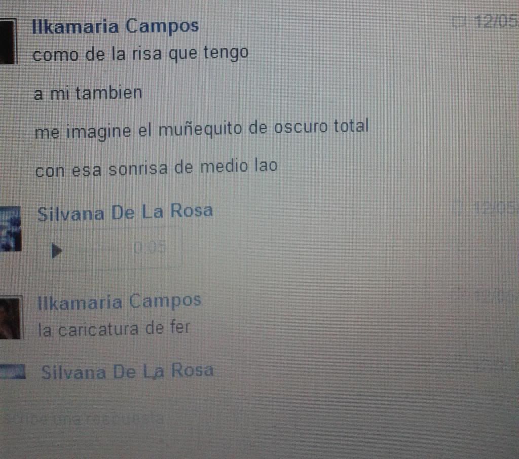 JEJEJEJJEJEJJEEJ SILVANAAAAAAAAAAAAAA QUE VAN A PENSAR LAS COLUNGANAUTAS, QUE DE LO UNICO QUE HABLAMOS CUANDO NOS CONECTAMOS ES DE FERRRRRRRRRR, NO OMBE QUE PENAAAAAAAA, SO, ME GUSTO UN RESTO LA OTRA MUÑEQUITA TA NICE, SO CUTE, GRAX, SABES PA DARLE OTROS MATICES VERDAD, ACA ESTOY WORKING A LOT, UFFF, Y TENGO UN SUEÑO QUE CUANDO LLEGUE A CASA MI CAMITA ES LO UNIK QUE QUIERO VER FRENTA A MI JAJAJJAJAJJAJA, PERO, ME ENCANTA LEERTE SIGUE SUPER NICE, Y NO OS PREOCUPAISSSSSSS QUE HAREMOS OTRAS OBRAS MI QUERIDA PRODUCTORA ESTRELLA...!!!!