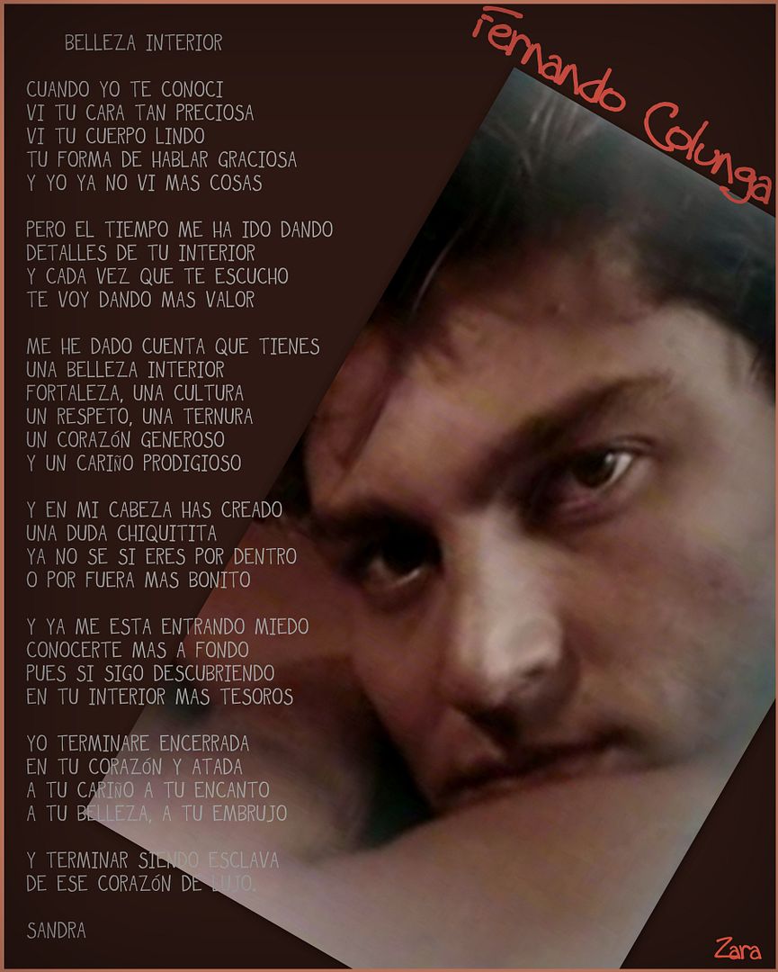 HOLAAAAAAAAAA...MI ZARITAAA...PUÉS CLARO QUE SOLO ÉL TIENE LA CULPA, QUE A MIS 61 AÑOS YO ESTÉ LOCA X LLEGAR A CASA Y PONER MI COMPU PARA QUE ??? SOLO POR VERLE ...JAJAJA YA HASTA EN EL MOVIL ME HACE TILÍN..UN BESAZO Y PERDÓN POR ENTRAR POQUITO...AAAYYYY COMO LO QUIEROOOO
