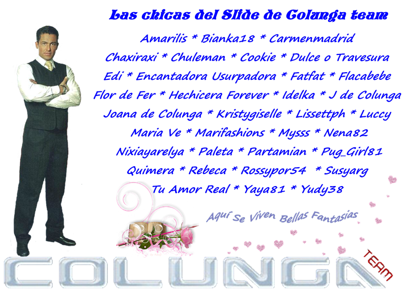IDELKA CORAZON NOS LLENA DE ALEGRIA QUE TE HAYA GUSTADO EL SLIDE. ASI ES NUESTRA CREATIVIDAD ES UN REGALO DE DIOS Y COMO NO SI TENEMOS A UN BUEN MODELO Y LAS CHICAS SLIDE DE COLUNGA TEAM. GRACIAS POR TU VISITA....BESOS, JULIA Y ROSSY