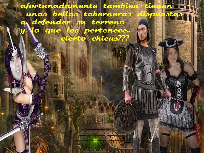 Pero como en todo cuento tambien hay guerreros dispuestos a defender a las taberneras,no importa la excasez de prendas por parte del guerrero....y taberneras dispuestas a defender al heroe....