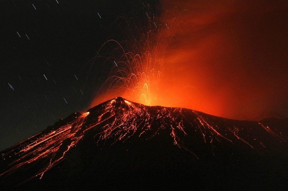 Hoy os dejo una imagen de una erupción del volcán mexicano Popocatépetl que se encuentra en el Estado de Puebla, a 55 Km del Distrito Federal. Posee una altitud de 5452 metros sobre el nivel del mar siendo la segunda montaña más alta de México y uno de sus 14 volcanes activos.