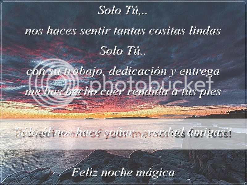 GRACIAS MI SANDRITA PRECIOSA POR TAN BELLISIMA NOCHE MAGICA!!!!!!SOLO TU MI CIELO ME HACES VIBRAR MI CORAZON DE AMOR POR TI. BESITOS QUE LINDURA DE BANNER.