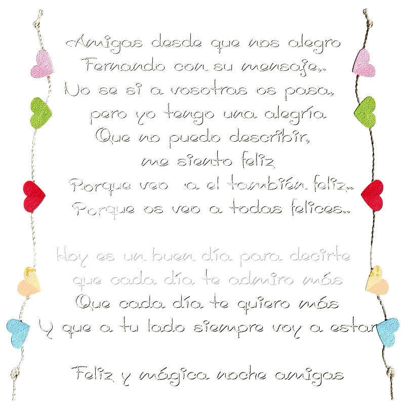 Bella Noche Magica Sandra... lo que implica el mensaje, lo que nuestros corazones sintieron al leerlo, esa alegria que perdura y se siente cada vez que lo leemos, esa magia que se respira desde ese momento... y que sigue y sigue....