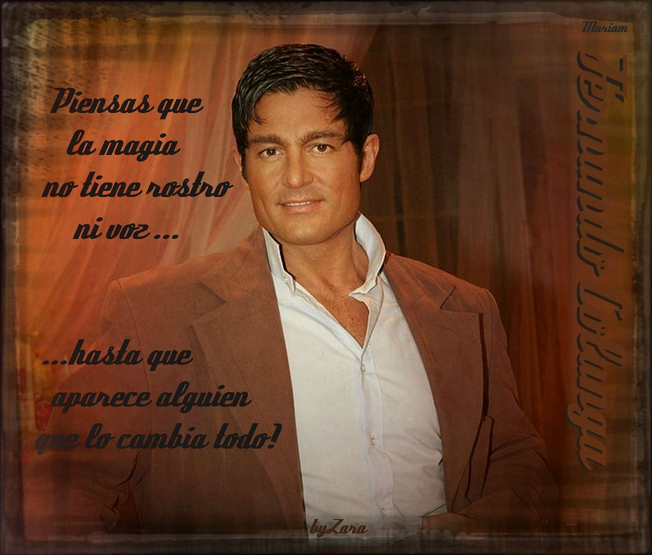 Bello tema Zara. Talento, estudio, profesionalidad,versatilidad, carisma, trabajo, etc, todo esto conjugado lleva al EXITO que se llama Fernando Colunga !!!!