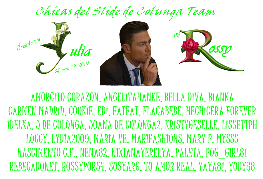 Mis adoradas Julia y Rossy. me da mucha emoción volver a este bonito, creativo y soñador slide, lleno de corazón y sentimientos de un sueños Colungueros, que sólo ustedes pueden hacer realidad, me siento orgullosa y feliz de ser parte del slide, ¡Las adoro muchísimo! Siempre en mi corazón y a sus ordenes, gracias por todo, Dios me las bendiga, ¡Felices Pascuas bellas! Y me llevo mi fotito con mucho cariño y amor con su permiso... ¡Besitos! Conejito Fer, y Colunga Team