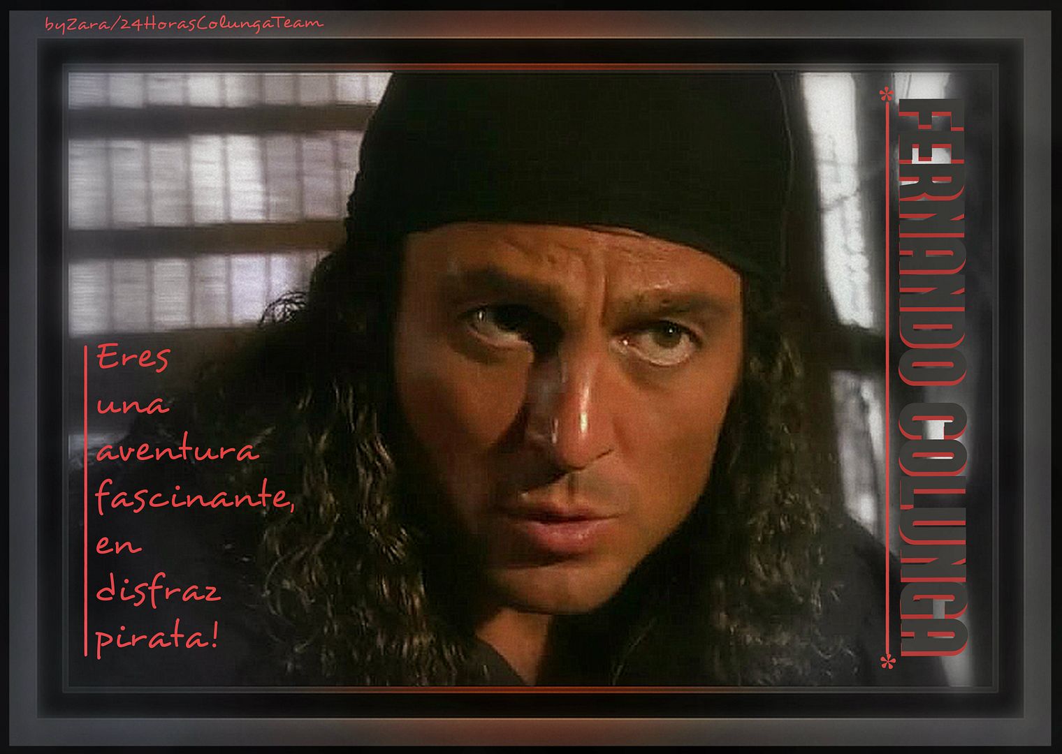 BUENAS Y FERLÍCES NOCHES MÁGICAS...MI QUERIDA ZARA,PRECIOSA CAPTURA DE NUESTRO LEAL Y VALIENTE PIRATA,AL QUE NUESTRO FER DIO VIDA CON UNA ACTUACIÓN MAGISTRAL,(Y ME QUEDO CORTÍSIMA,PERO SI EMPIEZO NO TERMINARÍA NUNCA,JAJAA)...QUIERO UNA DE ESAS FASCINANTES AVENTURAS PARA MI,PORFA...TE DESEO UN FERLIZ Y MÁGICO JUEVES CON BESOTES MIL...