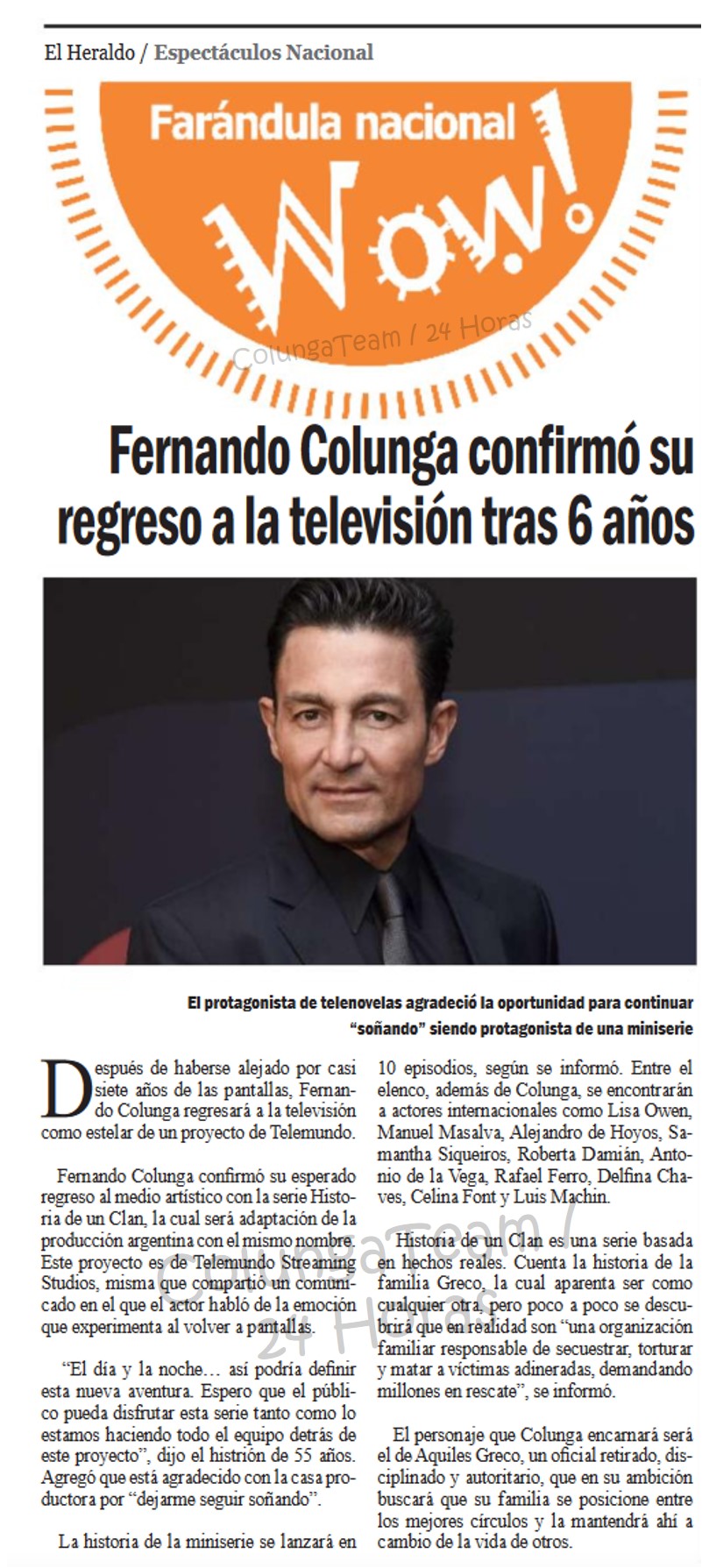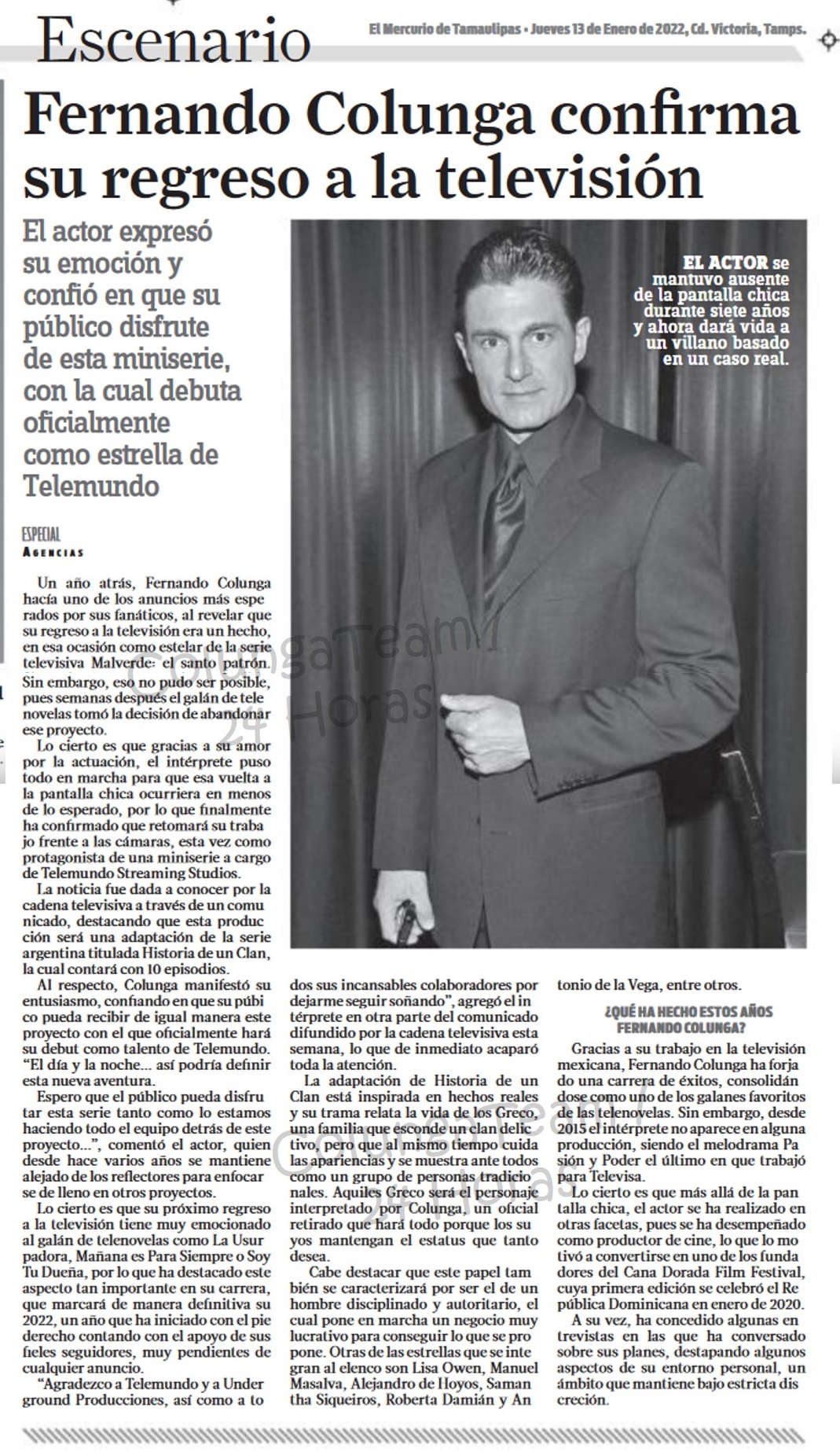 Pero con el solo hecho de llamarse Fernando Colunga la suya calidad de actor habla por el.
