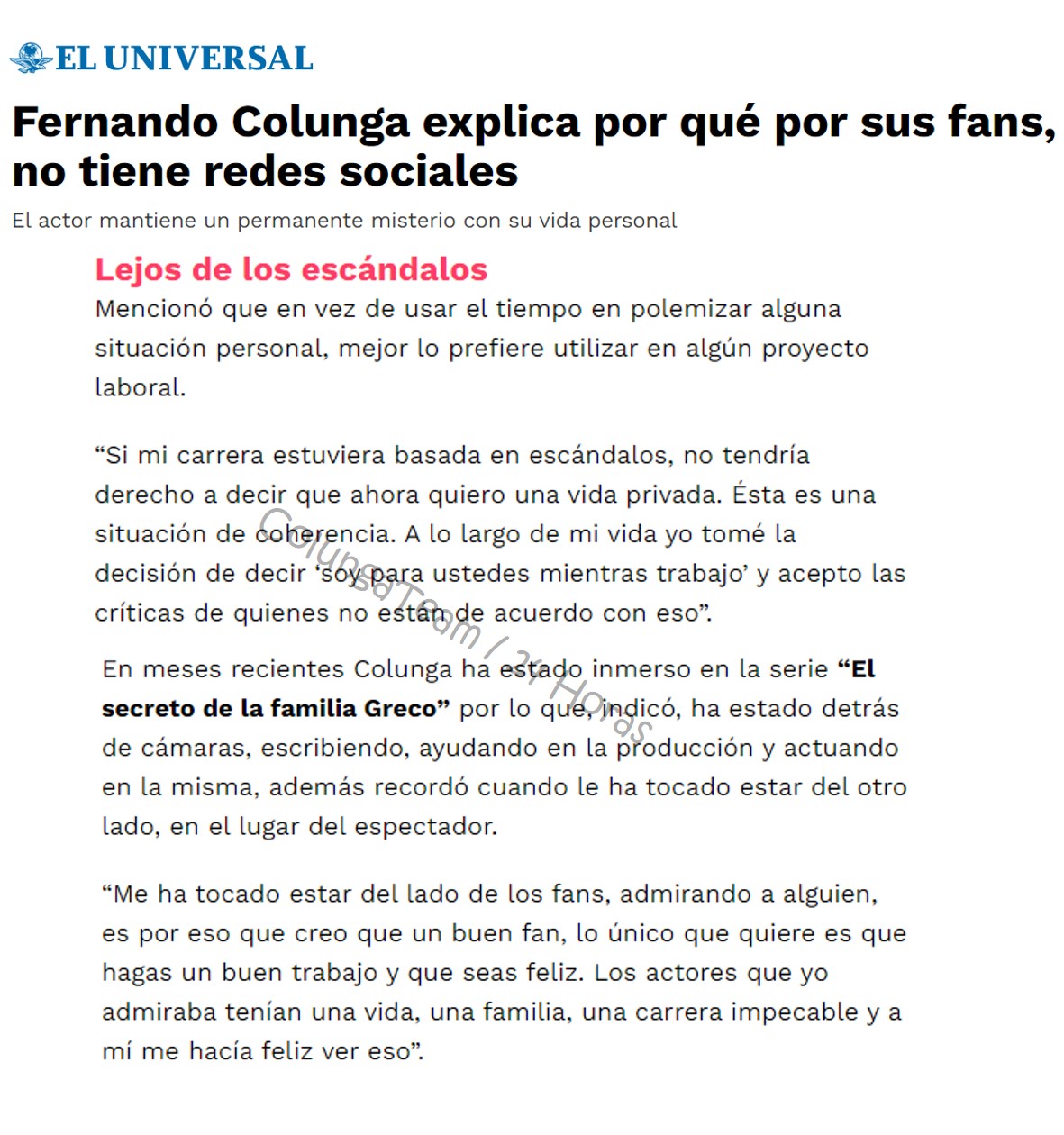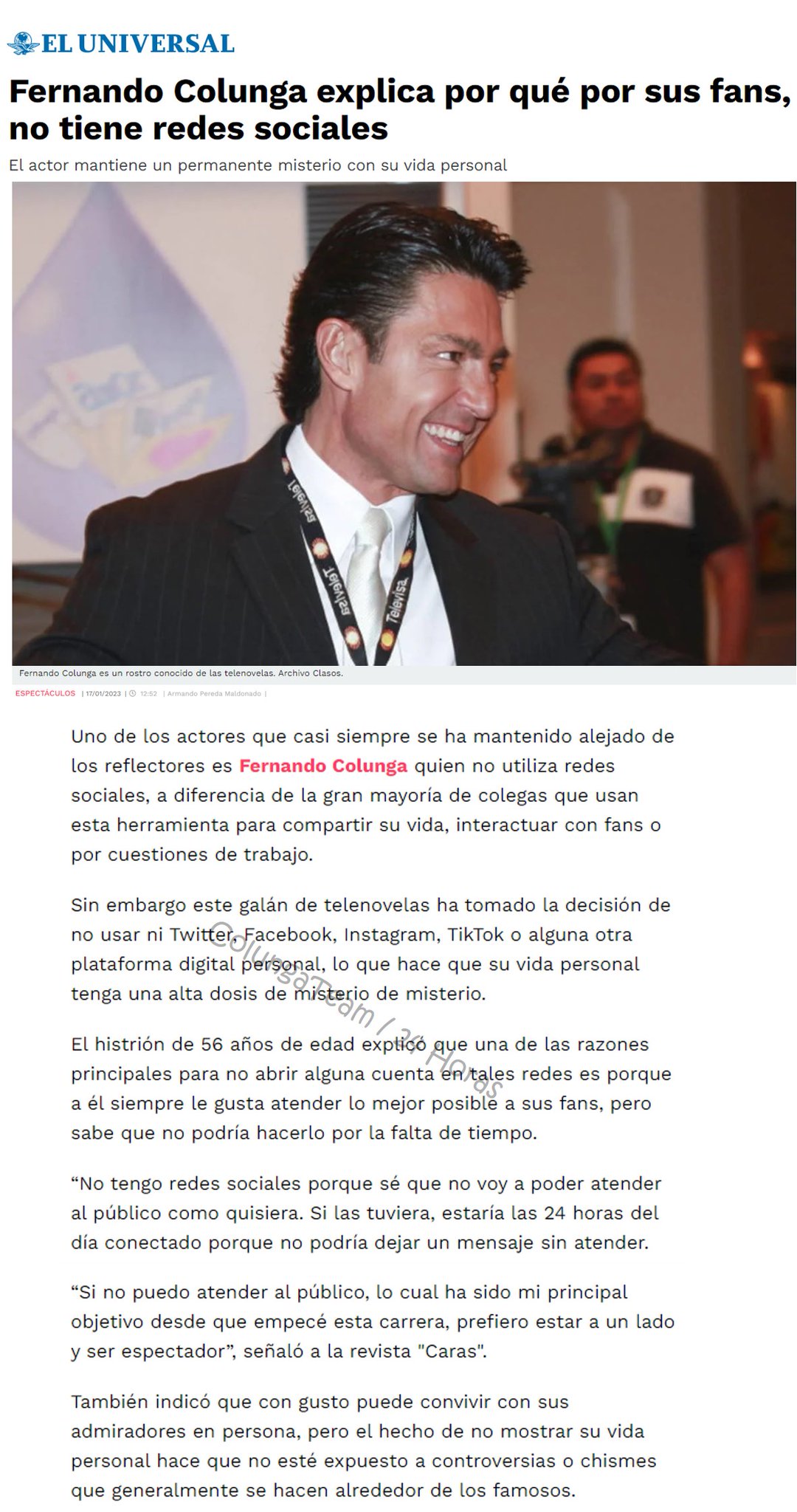 Fer siempre respetuoso de su carrera, publico y por supuesto su persona.... además solo él tiene una página como ColungaTeam... para que queremos redes sociales.