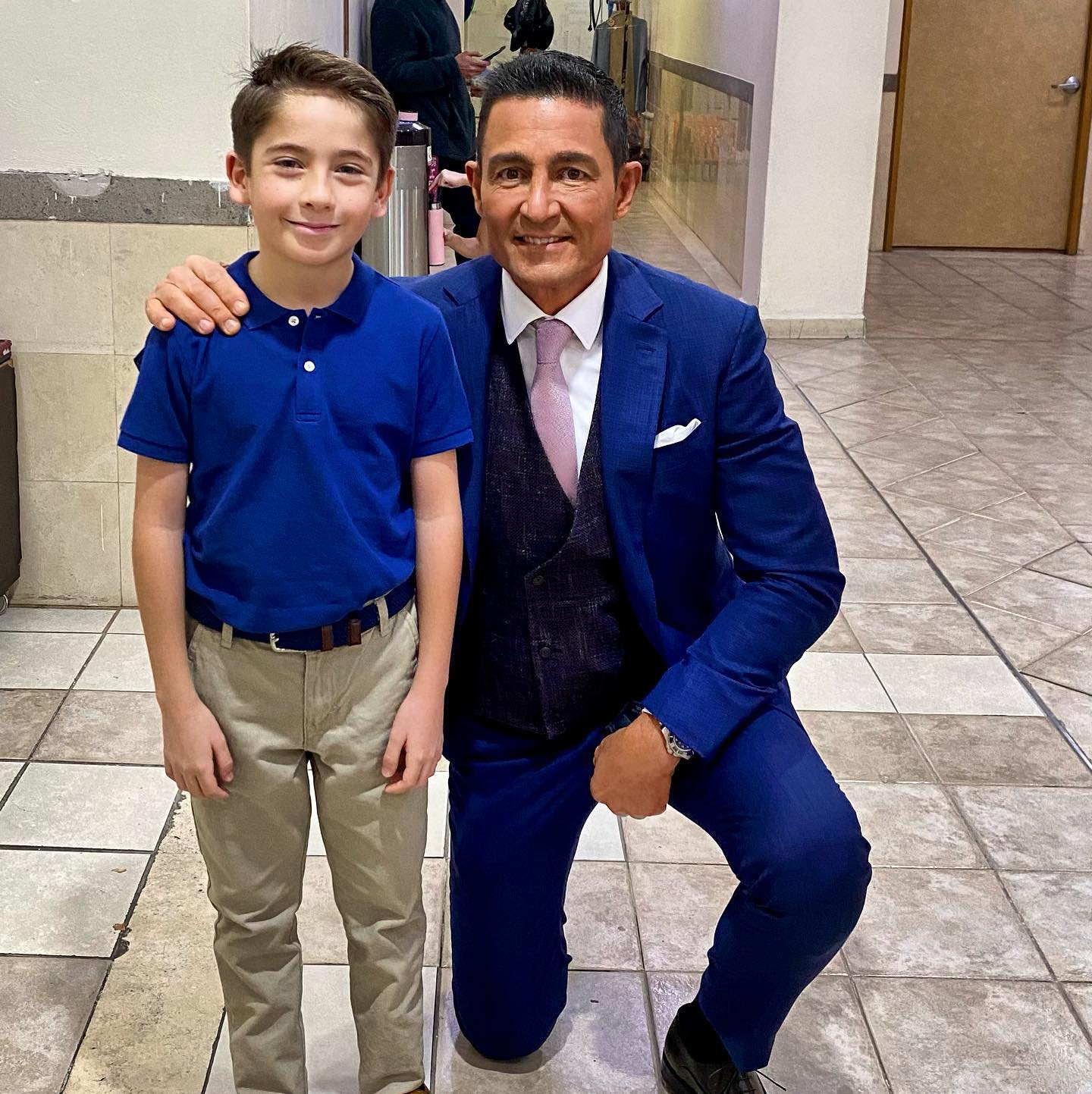 Hermosos ambos, coordinados de azul...