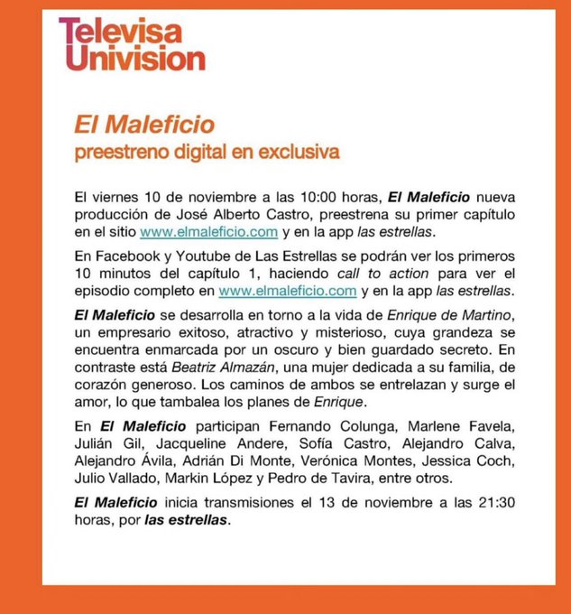 El viernes 10 de noviembre un pre-estreno de El Maleficio